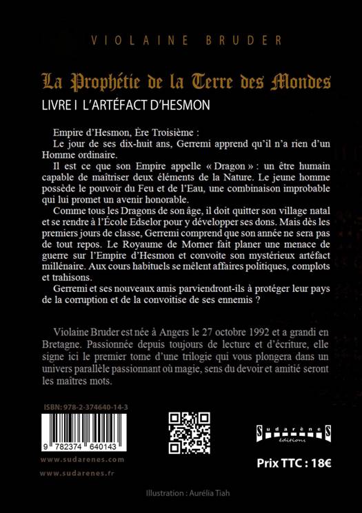 Empire d'Hesmon, Ère Troisième: le jour de ses dix-huit ans, Gerremi apprend qu'il n'a rien d'un Homme ordinaire. Il est ce que son Empire appelle "Dragon" un être humain capable de maîtriser deux éléments de la nature. Le jeune homme possède le pouvoir du Feu et de l'Eau, une combinaison improbable qui lui promet un avenir honorable. Comme tous les Dragons de son âge, il doit quitter son village natal et se rendre à l'école Edselor pour y développer ses dons. Mais dès le premier jour de classe, Gerremi comprend que son année ne sera pas de tout repos. Le Royaume de Morner fait planer une menace de guerre sur l'Empire d'Hesmon et convoite son mystérieux artéfact millénaire. Aux cours habituels se mêlent affaires politiques, complots et trahisons. Gerremi et ses nouveaux amis parviendront-ils à protéger leur pays de la corruption et de la convoitise de ses ennemis ? Violaine Bruder signe ici le premier tome d'une saga Fantasy qui s'annonce d'ores et déjà passionnante ! EXTRAIT - Debout ! Il est l'heure de te lever ! Gerremi émit un grognement lorsqu'il sentit le drap dans lequel il s'était enroulé glisser sur son corps. Les volets claquèrent contre la paroi de la maison, baignant la pièce d'une douce lueur orangée. Lorsque la porte de sa chambre se referma - indiquant que sa mère venait de partir - le jeune homme se leva et, comme tous les matins, il s'adossa au rebord de sa fenêtre pour prendre une bouffée d'air pur avant d'entamer sa journée. Le soleil commençait à se lever et dévoilait peu à peu le paysage campagnard dans lequel Gerremi vivait. De sa fenêtre, il pouvait apercevoir la petite maison coquette au toit de chaume de ses voisins. Elle donnait sur un jardin fleuri et soigneusement entretenu par la maîtresse de maison. Quand la voisine n'était pas occupée à écouter les derniers racontars dans les lieux stratégiques du village - le lavoir, la taverne ou la place principale - elle rentrait chez elle pour choyer ses plantes, comme s'il s'agissa