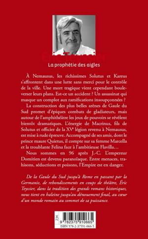 A Nemausus, les richissimes Solutus et Kareus s'affrontent dans une lutte sans merci pour le contrôle de la ville. Une mort tragique vient cependant bouleverser leurs plans. Est-ce un accident ? Un assassinat qui masque un complot aux ramifications insoupçonnées ? La construction des plus belles arènes de Gaule du Sud promet d'épiques combats de gladiateurs, mais autour de l'amphithéâtre les jeux de pouvoirs se révèlent bientôt dramatiques. L'énergie de Macrinus fils de Solutus et officier de la XVe légion revenu à Némausus, est mise à rude épreuve. Accompagné de ses amis, dont le prince maure Quietus, il compte sur sa femme Marcella et la troublante Felina face à l'ambitieuse Flavilla... Nous sommes en 96 après J.-C. L'empereur Domitien est devenu paranoïaque. Entre menaces, trahisons, séductions et poisons, l'Empire est en danger.