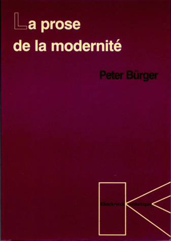 Walter Benjamin suspendait l'appropriation du passé à la construction du présent. Bürger inverse la démarche : relire les textes en prose de la modernité, du XIXe siècle à nos jours, est l'une des voies ouvertes à l'interprétation de l'époque actuelle et à l'enrichissement de nos expériences contemporaines.