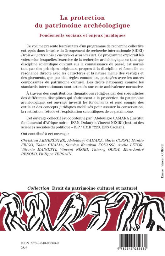 Ce volume présente les résultats d'un programme de recherche collective entrepris dans le cadre du Groupement de recherche internationale Droit du patrimoine culturel et droit de l'art. Ce programme explorait les voies selon lesquelles l'exercice de la recherche archéologique est normé tant par des principes originaux, propres à la discipline, que par des règles communes, partagées avec les autres composantes du patrimoine culturel. A travers différentes contributions thématiques, cet ouvrage investit les fondements et rend compte des outils et des concepts juridiques mobilisés pour assurer la conservation, la restitution, l'étude et l'exploitation scientifiques de ce patrimoine.