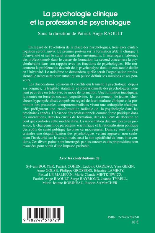 Face à l'évolution de la place des psychologues, voici trois axes d'interrogation : 1) Quelle formation à/de la clinique à l'Université et avec quels enseignants, quels professionnels ? 2) Quelle formation à la psychothérapie en université Quel devenir de la psychanalyse dont on constate le déclin ? 3) Quelle serait l'organisation professionnelle nécessaire pour autant qu'on puisse définir ses missions et ses pouvoirs ?