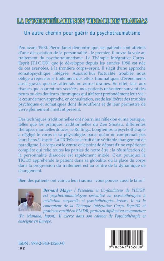 Bernard Mayer développe depuis les années 1980 La Thérapie Intégrative Corps-Esprit (TICE). Longtemps la psychothérapie a négligé le corps et sa physiologie. Le corps est le centre et point de départ d'une expérience complète qui relie toutes les parties de notre être. Ainsi, la réunification de la personnalité dissociée est rapidement montrée. Cette façon de procéder appréhende le patient dans sa globalité, la place du corps étant au centre de la dynamique de changement.