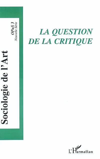 La nouvelle série de Sociologie de l'art traite d'une question essentielle: la place de la critique artistique et littéraire dans les logiques sociales en oeuvre dans le champ littéraire et artistique... Est publié aussi - dans le dossier "débats et controverses" - un débat contradictoire sur le livre de N. Heinich : Sociologie de l'art, qui est le premier et, à ce jour, le seul ouvrage de synthèse dans ce domaine de recherche.