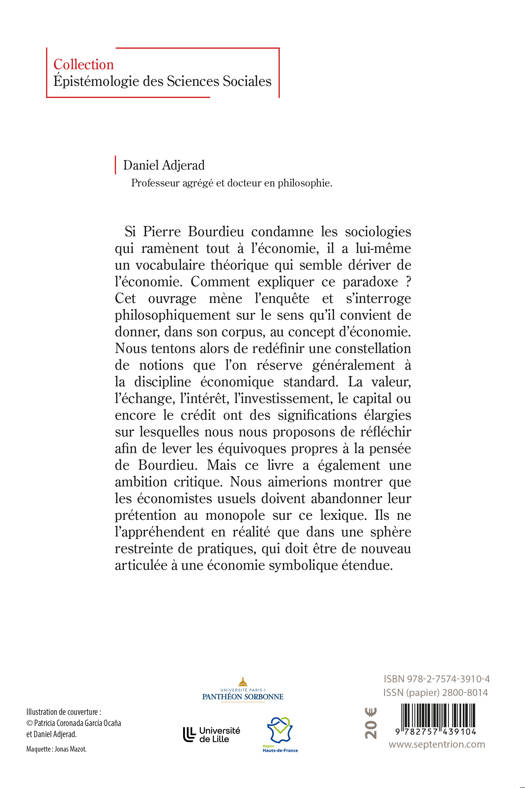 Si Pierre Bourdieu condamne les sociologies qui ramènent tout à l'économie, il a lui-même un vocabulaire théorique qui semble dériver de l'économie. Comment expliquer ce paradoxe ? Cet ouvrage mène l'enquête et s'interroge philosophiquement sur le sens qu'il convient de donner, dans son corpus, au concept d'économie. Nous tentons alors de redéfinir une constellation de notions que l'on réserve généralement à la discipline économique standard. La valeur, l'échange, l'intérêt, l'investissement, le capital ou encore le crédit ont des significations élargies sur lesquelles nous nous proposons de réfléchir afin de lever les équivoques propres à la pensée de Bourdieu. Mais ce livre a également une ambition critique. Nous aimerions montrer que les économistes usuels doivent abandonner leur prétention au monopole sur ce lexique. Ils ne l'appréhendent en réalité que dans une sphère restreinte de pratiques, qui doit être de nouveau articulée à une économie symbolique étendue.