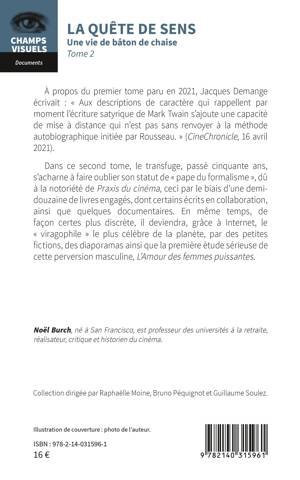 À propos du premier tome paru en 2021, Jacques Demange écrivait : « Aux descriptions de caractère qui rappellent par moment l'écriture satyrique de Mark Twain s'ajoute une capacité de mise à distance qui n'est pas sans renvoyer à la méthode autobiographique initiée par Rousseau. » (CineChronicle, 16 avril 2021). Dans ce second tome, le transfuge, passé cinquante ans, s'acharne à faire oublier son statut de « pape du formalisme », dû à la notoriété de Praxis du cinéma, ceci par le biais d'une demi-douzaine de livres engagés, dont certains écrits en collaboration, ainsi que quelques documentaires. En même temps, de façon certes plus discrète, il deviendra, grâce à l'Internet, le « viragophile » le plus célèbre de la planète, par des petites fictions, des diaporamas ainsi que la première étude sérieuse de cette perversion masculine, L'Amour des femmes puissantes.