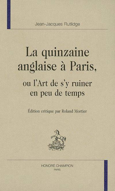 Auteur de nombreux ouvrages de caractère très divers, Jean-Jacques Rutlidge ne doit la survie de son nom qu'à ses comédies et à un roman assez exceptionnel qui lui a valu une réelle notoriété en son temps. La Quinzaine anglaise à Paris, ou l'art de s'y ruiner en peu de temps se veut l'histoire d'un jeune et riche lord anglais venu s'initier aux charmes de la vie parisienne et que de subtils aigrefins mèneront rapidement à la ruine et à la prison pour dettes. L'auteur nous conduit à la fois dans le beau monde faisandé de l'époque, dans les salons des grandes cocottes et dans l'atelier de J.-B. Greuze, le peintre de la vertu. Paris est vu et dénoncé comme le lieu du paraître et de la perversion. Mais Rutlidge est aussi un témoin attentif, des salles de jeu comme des premières courses de chevaux. L'histoire de Milord est celle d'une chute que précipitent sa candeur et sa vanité, sa curiosité mêlée de gêne et son érotisme d'adolescent qui s'éveille à l'amour, qu'il ne découvre que tarifé. Rutlidge a voulu écrire une oeuvre morale à l'intention des visiteurs anglais. Il a écrit aussi ce qui ressemble plutôt à l'ébauche d'un roman balzacien.