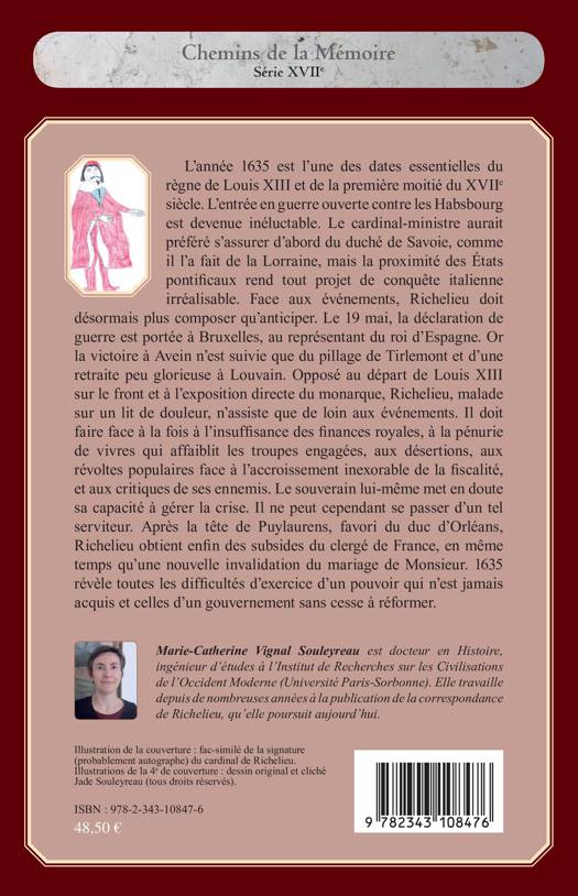 1635 est une année essentielle du règne de Louis XIII et de la première moitié du XVIIe siècle. L'entrée en guerre contre les Habsbourg est devenue inéluctable, et la déclaration de guerre est portée au représentant du roi d'Espagne le 19 mai. Opposé au départ de Louis XIII sur le front et à l'exposition directe du monarque, Richelieu, malade, n'assiste que de loin aux événements, mais doit faire face à de nombreux obstacles. Le souverain lui-même met en doute sa capacité à gérer la crise. 1635 révèle toutes les difficultés d'exercice d'un pouvoir qui n'est jamais acquis et celles d'un gouvernement sans cesse à réformer.