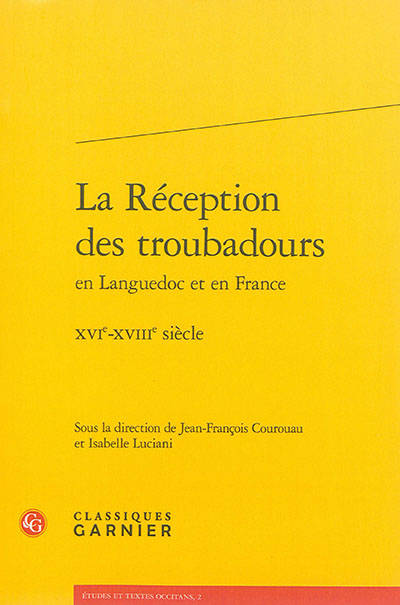 La Renaissance française ignore les troubadours occitans jusqu'à la publication des Vies des plus celebres et anciens Poëtes provensaux de Jean de Nostredame (1575). À partir des forgeries élaborées par cet érudit provençal, plusieurs discours se constituent et s'entrecroisent. Les premiers historiens de la littérature française intègrent les troubadours dans l'histoire littéraire nationale tandis que se répand une version mondaine du troubadour galant. En Languedoc, des érudits développent les prémisses d'une conscience historique qu'il s'agit d'articuler avec une identité nationale en construction. Autour des troubadours qu'on ne lit pas et qu'on ne parvient pas à éditer se nouent des enjeux littéraires, sociaux et politiques.