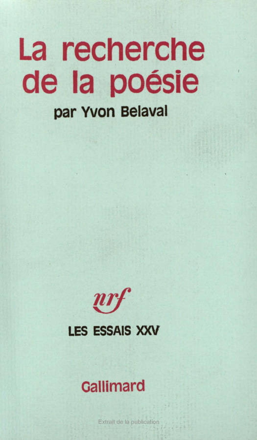 Yvon Belaval analyse d'abord le plaisir que donne la poésie, le plaisir de lire un poème, et distingue trois âges dans son acquisition - l'âge du Petit Roi de Galice, l'âge de Musset, l'âge parnasso-symboliste - permettant de comprendre la diversité des lectures et le rôle de l'anecdote, du sentiment, de l'intelligence esthétique. Puis, l'auteur s'intéresse à la création du poème. Frappé par l'alternance des saisons poétiques vives et mortes dans l'histoire des lettres, il l'explique par cette loi que l'imitation productrice tant qu'elle réfracte un modèle à travers des milieux différents, est platement reproductrice lorsqu'elle le reflète en un même milieu.