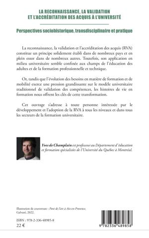 La reconnaissance, la validation et l'accréditation des acquis (RVA) constitue un principe solidement établi dans de nombreux pays et en plein essor dans de nombreux autres. Toutefois, son application en milieu universitaire semble confinée aux champs de l'éducation des adultes et de la formation professionnelle et technique. Or, tandis que l'évolution des besoins en matière de formation et de mobilité exerce une pression grandissante sur le modèle universitaire traditionnel de validation des compétences, les histoires de vie en formation nous offrent les clés de cette transformation. Cet ouvrage s'adresse à toute personne intéressée par le développement et l'adoption de la RVA à tous les niveaux et dans tous les secteurs de la formation universitaire.