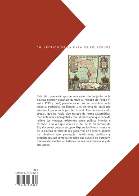Diecinueve investigadores analizan las líneas maestras de la política exterior durante el reinado de Felipe V a partir de tres bloques temáticos: la formulación de una nueva política exterior que perseguía revertir los tratados de Utrecht y el desarrollo diplomático para llevarla a cabo; la reacción internacional ante el despliegue de la política exterior borbónica; y el impacto de la acción exterior de Felipe V, tanto en el ámbito comercial como en el de la demanda militar.