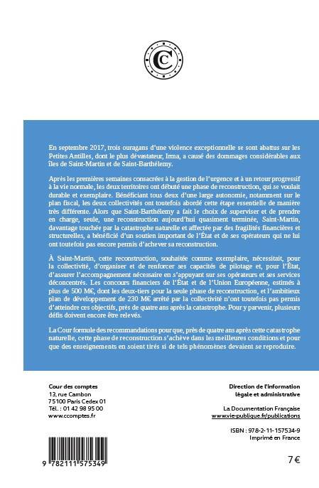 La Cour recommande que la phase de reconstruction de Saint-Martin et de Saint- Barthélémy après le passage de l'ouragan Irma, s’achève dans les meilleures conditions.