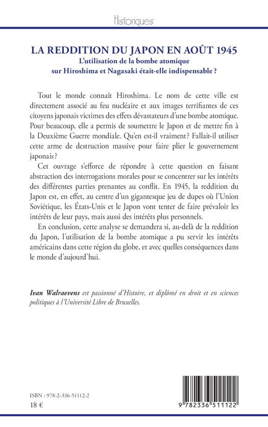 Tout le monde connaît Hiroshima. Le nom de cette ville est directement associé au feu nucléaire et aux images terrifiantes de ces citoyens japonais victimes des effets dévastateurs d'une bombe atomique. Pour beaucoup, elle a permis de soumettre le Japon et de mettre fin à la Deuxième Guerre mondiale. Qu'en est-il vraiment ? Fallait-il utiliser cette arme de destruction massive pour faire plier le gouvernement japonais ? Cet ouvrage s'efforce de répondre à cette question en faisant abstraction des interrogations morales pour se concentrer sur les intérêts des différentes parties prenantes au conflit. En 1945, la reddition du Japon est, en effet, au centre d'un gigantesque jeu de dupes où l'Union Soviétique, les États-Unis et le Japon vont tenter de faire prévaloir les intérêts de leur pays, mais aussi des intérêts plus personnels. En conclusion, cette analyse se demandera si, au-delà de la reddition du Japon, l'utilisation de la bombe atomique a pu servir les intérêts américains dans cette région du globe, et avec quelles conséquences dans le monde d'aujourd'hui.