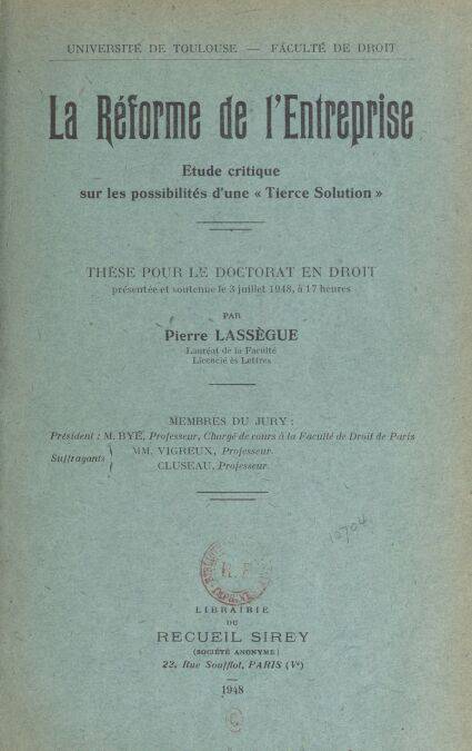 Thèse pour le Doctorat en droit, présentée et soutenue le 3 juillet 1948 à 17 heures