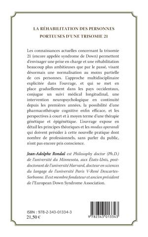 Les connaissances actuelles concernant la trisomie 21 (encore appelée syndrome de Down) permettent d’envisager une prise en charge et une réhabilitation beaucoup plus ambitieuses que par le passé, visant désormais une normalisation au moins partielle de ces personnes. L’ouvrage expose en détail les principes théoriques et les modus operandi qui doivent présider à cette nouvelle pratique dont nombre de professionnels, sans parler du public, n’ont pas encore pris conscience.