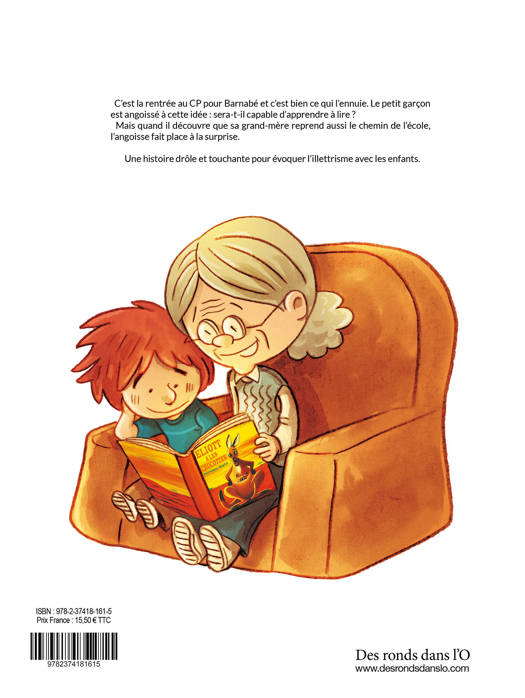 C’est bientôt la rentrée au CP pour Barnabé et c’est bien ce qui l’ennuie. Le petit garçon est angoissé à cette idée. Mais l’angoisse va disparaître quand il va apprendre que sa grand-mère reprend aussi le chemin de l’école.