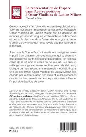 Cet ouvrage qui a fait l'objet d'une première publication en 1997 dit tout autant l'importance de cet auteur inclassable. Oscar Vladislas de Lubicz-Milosz est ce passeur de mondes, passeur de langues, emblématique de l'inachevé et des exils d'un monde à l'autre, d'une langue à l'autre, d'un être-au-monde qui ne se révèle que par l'ailleurs et le lointain. À son ami le Comte Prozor, il révèle ce voyage immense imposé à un Lituanien de notre classe et qui se cherche . Il fut passionné par la recherche des origines, les siennes, celles de la Lituanie et celles du peuple juif. Je suis un mélange du sang royal de mes ancêtres paternels et du sang biblique de mes ascendants maternels, écrivait-il dans une de ses lettres. Oscar Vladislas de Lubicz-Milosz était obsédé par la détérioration des êtres et la déliquescence des lieux enfuis, entre la recherche passionnée du Réel et l'impossible équilibre de la vie.