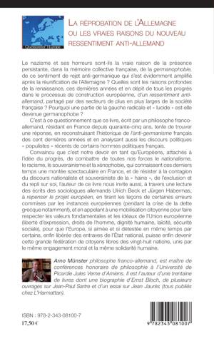 Le nazisme et ses horreurs sont-ils la vraie raison de la présence persistante, dans la mémoire collective française, de la germanophobie, ce sentiment de rejet anti-germanique ? Quelles sont les raisons profondes de la renaissance, ces dernières années et en dépit du processus de construction européenne, d'un ressentiment anti-allemand, partagé par des secteurs de plus en plus larges de la société française ? Pourquoi une partie de la gauche radicale est-elle devenue germanophobe ? C'est à ce questionnement que ce livre, écrit par un philosophe franco-allemand, tente de trouver une réponse.