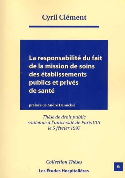 Mais jusqu'au travail de la thèse de Cyril Clément, aucune œuvre majeure n'avait porté sur la responsabilité du fait de la mission de soins des établissements de santé publics et privés. C'est dire que ce travail de thèse est bien venu à une époque où les droits du patient montent en flèche. Il est intéressant de savoir comment les juges civils et administratifs accordent réparation, et plus encore d'observer si ces jurisprudences convergent ou non. Sans doute existe-t-il une dynamique favorable aux patients, permettant ainsi d'expliquer une convergence entre les deux jurisprudences, qui ne cesse de se confirmer encore très récemment dans des domaines aussi variés que les infections nosocomiales et l'obligation d'information médicale.