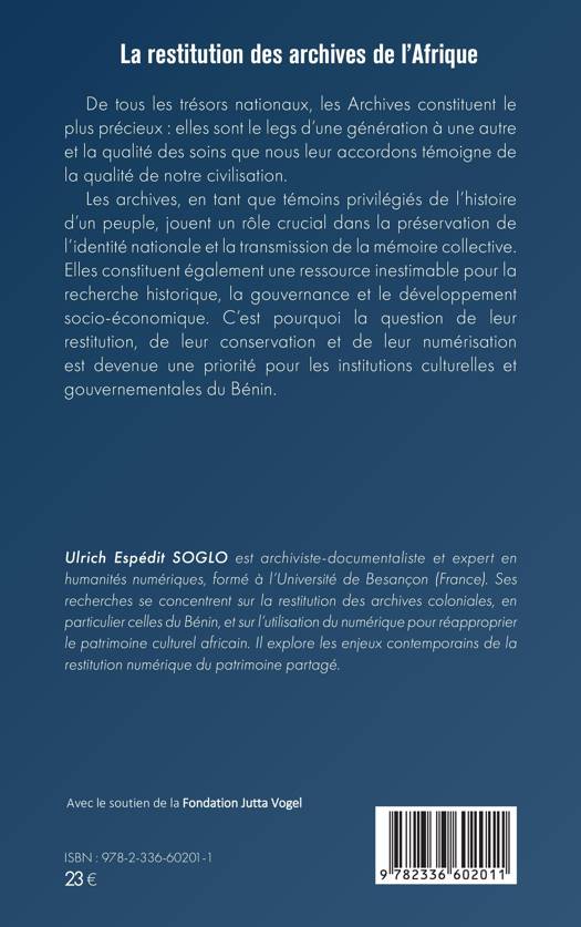 De tous les trésors nationaux, les Archives constituent le plus précieux: elles sont le legs d'une génération à une autre et la qualité des soins que nous leur accordons témoigne de la qualité de notre civilisation. Les archives, en tant que témoins privilégiés de l'histoire d'un peuple, jouent un rôle crucial dans la préservation de l'identité nationale et la transmission de la mémoire collective. Elles constituent également une ressource inestimable pour la recherche historique, la gouvernance et le développement socio-économique. C'est pourquoi la question de leur restitution, de leur conservation et de leur numérisation est devenue une priorité pour les institutions culturelles et gouvernementales du Bénin.