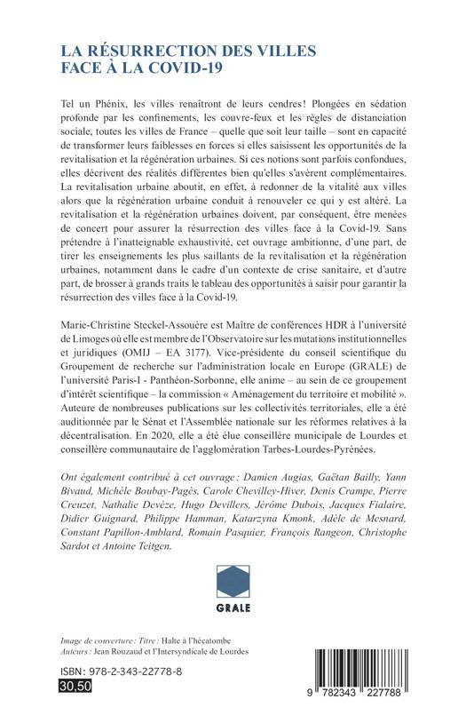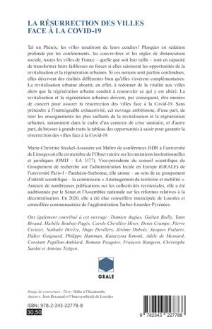Tel un Phénix, les villes renaîtront de leurs cendres ! Plongées en sédation profonde par les confinements, les couvre-feux et les règles de distanciation sociale, toutes les villes de France sont en capacité de transformer leurs faiblesses en forces si elles saisissent les opportunités de la revitalisation et la régénération urbaines. Si ces notions sont parfois confondues, elles décrivent des réalités différentes bien qu'elles s'avèrent complémentaires. La revitalisation urbaine aboutit, en effet, à redonner de la vitalité aux villes alors que la régénération urbaine conduit à renouveler ce qui y est altéré. La revitalisation et la régénération urbaines doivent, par conséquent, être menées de concert pour assurer la résurrection des villes face à la Covid-19. Sans prétendre à l'inatteignable exhaustivité, cet ouvrage ambitionne, d'une part, de tirer les enseignements les plus saillants de la revitalisation et la régénération urbaines, notamment dans le cadre d'un contexte de crise sanitaire, et d'autre part, de brosser à grands traits le tableau des opportunités à saisir pour garantir la résurrection des villes face à la Covid-19.