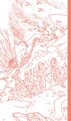 La Retirada de 1939, l'Exode des républicains espagnols vaincus, parqués dans des camps (Argelès, Prats...) à leur arrivée en France racontée par des dessins, d'une force incroyable, de Josep Bartoli, témoin et acteur de ce drame, grand artiste et ami de Frida Kahlo.