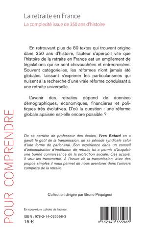 En retrouvant plus de 80 textes qui trouvent origine dans 350 ans d'histoire, l'auteur s'aperçoit vite que l'histoire de la retraite en France est un empilement de législations qui se sont chevauchées et entrecroisées. Souvent catégorielles les réformes n'ont jamais été globales, laissant s'exprimer les particularismes qui nuisent à la recherche d'une vraie réforme conduisant à une retraite universelle. L'avenir des retraites dépend de données démographiques, économiques, financières et politiques très évolutives. D'où la question: une réforme globale apaisée est-elle encore possible ?