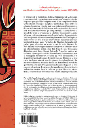 Si proches et si éloignées à la fois, Madagascar et La Réunion entretiennent des rapports complexes autour d’un destin colonial en partie partagé fait de dépendances et de complémentarités. Cette relation privilégiée s’explique par les liens tissés entre les acteurs du système colonial que sont notamment les membres des sociétés savantes de La Réunion ou les volontaires des bataillons militaires réunionnais qui ont participé à la conquête de la Grande Île selon le principe de la « Colonie colonisatrice ». Cette influence réciproque concerne également les flux de populations avec le départ de Réunionnais qui espéraient fonder à Madagascar une nouvelle vie tout à la fois empreinte de nouveauté et d’exo-territorialité, mais aussi l’arrivée à La Réunion d’engagés malgaches pour répondre au besoin criant de main d’œuvre. En toile de fond se joue également une concurrence coloniale entre les administrations et les élites des deux îles que les projets d’établissement d’une France Orientale Française mettent en évidence. Les rapports que ces deux colonies entretiennent avec la métropole déterminent le cadre de leurs interactions. Les liens s’inscrivent enfin dans des contextes qui dépassent le seul cadre local pour s’ouvrir sur des perspectives plus globales. Le positionnement des deux îles durant les deux conflits mondiaux questionne ainsi des stratégies coloniales qui échappent le plus souvent à la volonté des acteurs. Ce travail reprend en partie des recherches menées dans le cadre de projets éditoriaux divers dont la cohérence fait désormais sens au sein de cette publication.