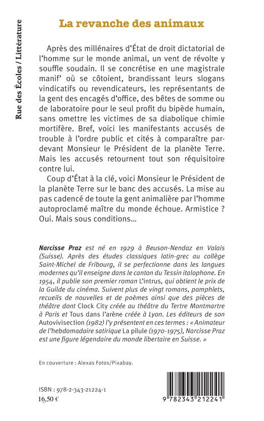 Après des millénaires d'État de droit dictatorial de l'homme sur le monde animal, un vent de révolte y souffle soudain. Il se concrétise en une magistrale manif' où se côtoient, brandissant leurs slogans vindicatifs ou revendicateurs, les représentants de la gent des encagés d'office, des bêtes de somme ou de laboratoire pour le seul profit du bipède humain, sans omettre les victimes de sa diabolique chimie mortifère. Coup d'État à la clé, voici Monsieur le Président de la planète Terre sur le banc des accusés. Armistice ? Oui. Mais sous conditions...