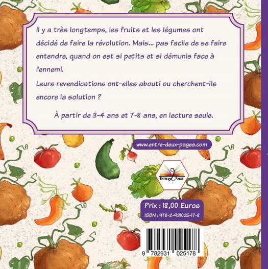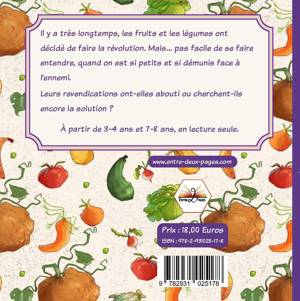 Une histoire de fruits et de légumes révolutionnaires. “Il y a très longtemps, les fruits et les légumes ont décidé de faire la révolution. Mais… pas facile de se faire entendre, quand on est si petits et si démunis face à l’ennemi. Leurs revendications ont-elles abouti ou cherchent-ils encore la solution ?”