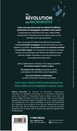 Dans cet ouvrage, Dr Kahina Oussedik dresse le panorama de trois microbiotes stratégiques, les plus importants pour notre équilibre au quotidien : le microbiote buccal, le microbiote intestinal et le microbiote vaginal. Car en apprenant à les préserver en faisant les bons choix alimentaires, nous dressons de véritables remparts contre les maladies chroniques, ce qui nous permet de vivre plus longtemps en bonne santé.