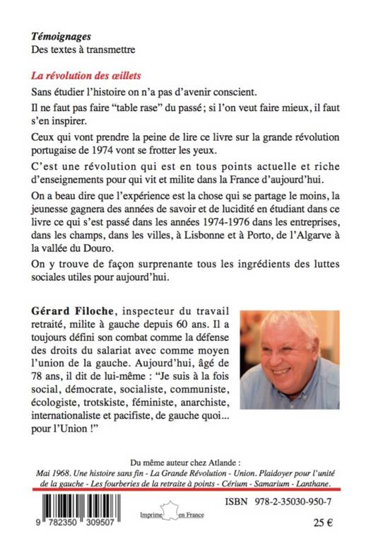 C’est cette extraordinaire saga que nous conte Gérard Filoche. Témoin direct du soulèvement portugais, le jeune homme, déjà leader politique au sein de la Ligue communiste révolutionnaire, nous livre dans son style inimitable sa mémoire d’évènements intenses. Véritable leçon de militantisme, il illustre ce que peut être une révolution populaire non-violente validée par les urnes.