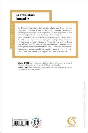 La Révolution française est ici revisitée à la lumière des recherches novatrices qui ont vu le jour depuis la célébration du bicentenaire. L’ouvrage est ordonné selon un plan qui, tout en respectant le récit chronologique, insiste sur certains aspects thématiques. Deux approches ont été particulièrement privilégiées : d’une part, la Révolution est saisie comme une rupture politique majeure, fondamentale pour la construction de la démocratie en France ; d’autre part, elle est replacée dans son environnement international à travers ses singularités et ses influences dans le monde de la fin du XVIIIe siècle.
