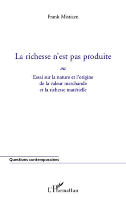 Cet ouvrage traite de la nature de la valeur marchande qui constitue aussi la richesse matérielle. Il s'écarte donc de la théorie économique qui n'aborde cette question que par le biais de la formation des prix. L'essai montre la nécessité de cette réflexion nouvelle pour comprendre la crise actuelle. L'analyse s'achève par quelques propositions concrètes susceptibles de préserver l'avenir de notre civilisation.