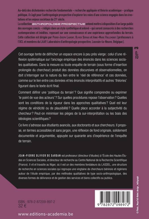 Cet ouvrage, méthodologique propose une réflexion systématique sur l’ancrage empirique des énoncés dans les sciences sociales qualitatives, en s’interrogeant sur la nature du lien entre le «  réel de référence  » et ces données, comme sur le lien entre ces données et les énoncés interprétatifs et autres «  théories » figurant dans le texte écrit final.