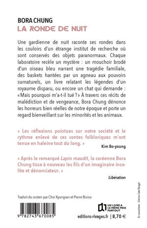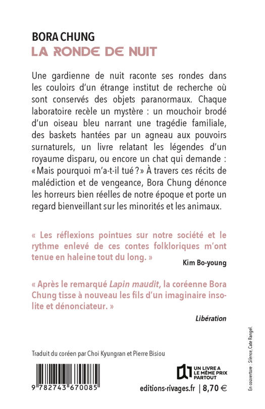 Après le succès de "Lapin maudit", finaliste du National Book Award et de l'International Booker Prize, l'autrice star Bora Chung revient avec un roman composé de sept histoires fantastiques se déroulant dans un étrange institut de recherches spécialisé dans les phénomènes paranormaux.