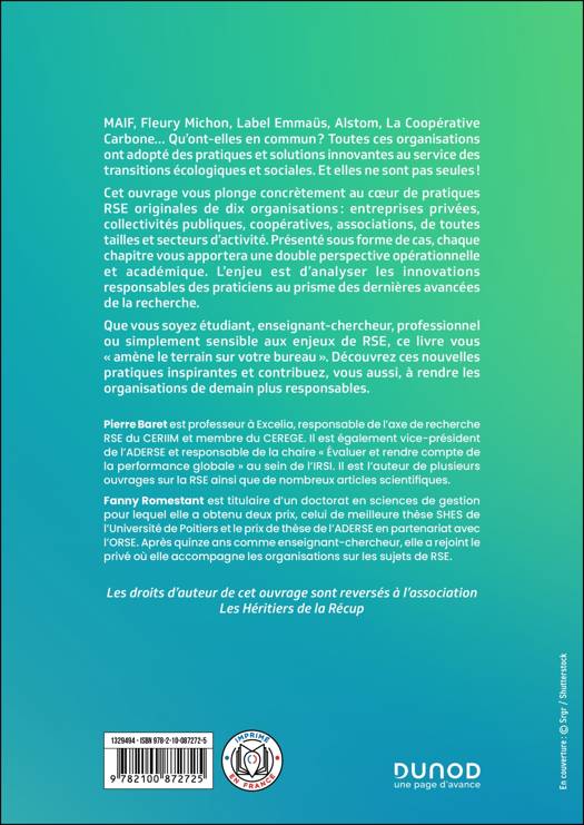 Que vous soyez étudiant, enseignant-chercheur, professionnel ou simplement sensible aux enjeux de RSE, ce livre vous « amène le terrain sur votre bureau ». Découvrez ces nouvelles pratiques inspirantes et contribuez, vous aussi, à rendre les organisations de demain plus responsables.