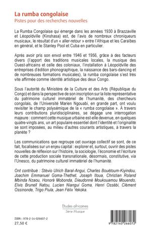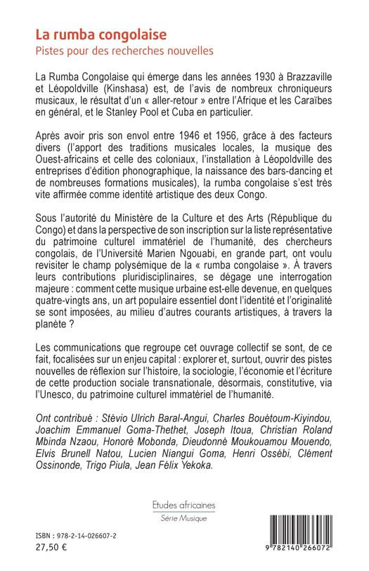 La Rumba Congolaise qui émerge dans les années 1930 à Brazzaville et Léopoldville est le résultat d'un « aller-retour » entre l'Afrique et les Caraïbes en général, et le Stanley Pool et Cuba en particulier. La rumba congolaise s'est très vite affirmée comme identité artistique des deux Congo. Dans la perspective de son inscription sur la liste représentative du patrimoine culturel immatériel de l'humanité, des chercheurs ont voulu revisiter le champ polysémique de la « rumba congolaise » en dégageant une interrogation majeure : comment cette musique urbaine est-elle devenue, en quelques quatre-vingts ans, un art populaire essentiel dont l'identité et l'originalité se sont imposées, au milieu d'autres courants artistiques, à travers la planète ? Cet ouvrage explore et ouvre des pistes nouvelles de réflexion sur l'histoire, la sociologie, l'économie et l'écriture de cette production sociale transnationale.