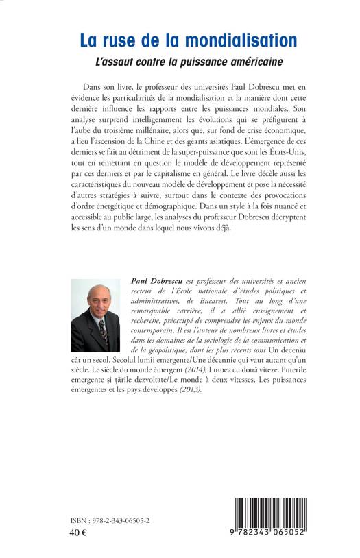 Paul Dobrescu met en évidence les particularités de la mondialisation et la manière dont elle influence les rapports entre les puissances mondiales. Son analyse surprend les évolutions qui se préfigurent à l'aube du troisième millénaire : l'ascension de la Chine et des géants asiatiques au détriment des Etats-Unis, la remise en question du modèle de développement traditionnel. Le livre décèle aussi les caractéristiques du nouveau mode de développement et pose la nécessité d'autres stratégies à suivre.
