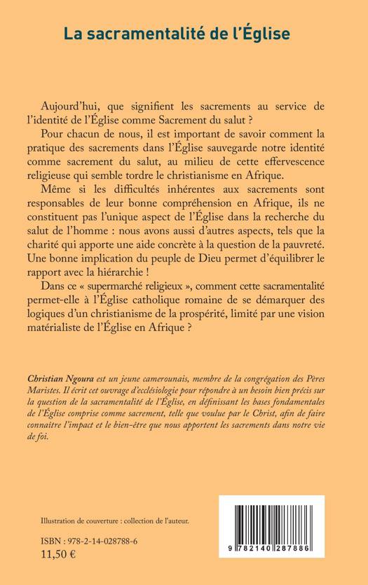 Aujourd'hui, que signifient les sacrements au service de l'identité de l'Église comme Sacrement du salut ? Pour chacun de nous, il est important de savoir comment la pratique des sacrements dans l'Église sauvegarde notre identité comme sacrement du salut, au milieu de cette effervescence religieuse qui semble tordre le christianisme en Afrique. Même si les difficultés inhérentes aux sacrements sont responsables de leur bonne compréhension en Afrique, ils ne constituent pas l'unique aspect de l'Église dans la recherche du salut de l'homme: nous avons aussi d'autres aspects, tels que la charité qui apporte une aide concrète à la question de la pauvreté. Dans ce supermarché religieux, comment cette sacramentalité permet-elle à l'Église catholique romaine de se démarquer des logiques d'un christianisme de la prospérité, limité par une vision matérialiste de l'Église en Afrique ?