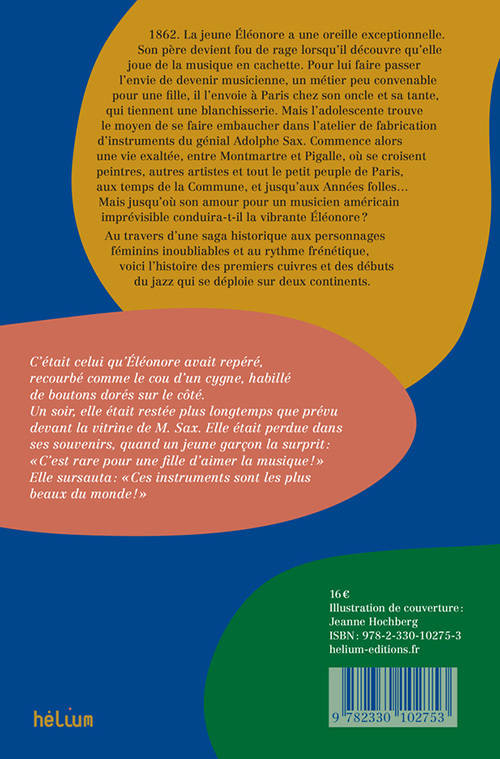 1862. La jeune Éléonore a une oreille exceptionnelle. Son père devient fou de rage lorsqu'il découvre qu'elle joue de la musique en cachette. Pour lui faire passer l'envie de devenir musicienne, un métier peu convenable pour une fille, il l'envoie à Paris chez son oncle et sa tante, qui tiennent une blanchisserie. Mais l'adolescente trouve le moyen de se faire embaucher dans l'atelier de fabrication d'instruments du génial Adolphe Sax. Commence alors une vie exaltée, entre Montmartre et Pigalle, où se croisent peintres, autres artistes et tout le petit peuple de Paris, aux temps de la Commune, et jusqu'aux Années folles... Mais jusqu'où son amour pour un musicien américain imprévisible conduira-t-il la vibrante Éléonore ?