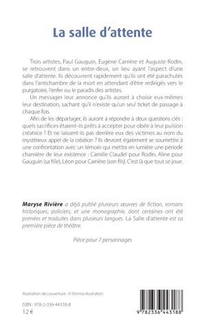 Trois artistes, Paul Gauguin, Eugène Carrière et Auguste Rodin, se retrouvent dans un entre-deux, un lieu ayant l’aspect d’une salle d’attente. Ils découvrent rapidement qu’ils ont été parachutés dans l’antichambre de la mort en attendant d’être redirigés vers le purgatoire, l’enfer ou le paradis des artistes. Un messager leur annonce qu’ils auront à choisir eux-mêmes leur destination, sachant qu’il n’existe qu’un seul ticket de passage à chaque fois. Afin de les départager, ils auront à répondre à deux questions clés : quels sacrifices étaient-ils prêts à accepter pour obéir à leur pulsion créatrice ? Et ne laissent-ils pas derrière eux des victimes au nom du mystérieux appel de la création ? Ils devront également se soumettre à une confrontation avec un témoin qui mettra en lumière une période charnière de leur existence : Camille Claudel pour Rodin, Aline pour Gauguin (sa fille), Léon pour Carrière (son fils). C’est là que tout se joue.