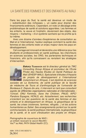 Dans les pays du Sud, la santé est devenue un mode de "redistribution des richesses", un cadre pour drainer des financements extérieurs. Cependant, on note un décalage entre problématique de santé et solutions apportées. Avec une dizaine d'années d'expérience de consultation au Mali et à l'international, l'auteur explique comment la santé des femmes et des enfants reste un enjeu majeur dans les pays en développement.