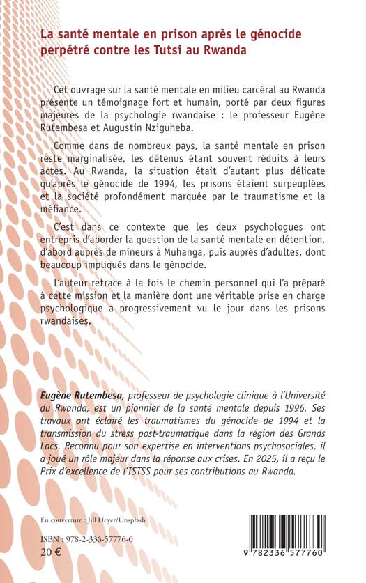 Cet ouvrage sur la santé mentale en milieu carcéral au Rwanda présente un témoignage fort et humain, porté par deux figures majeures de la psychologie rwandaise: le professeur Eugène Rutembesa et Augustin Nziguheba. Comme dans de nombreux pays, la santé mentale en prison reste marginalisée, les détenus étant souvent réduits à leurs actes. Au Rwanda, la situation était d'autant plus délicate qu'après le génocide de 1994, les prisons étaient surpeuplées et la société profondément marquée par le traumatisme et la méfiance. C'est dans ce contexte que les deux psychologues ont entrepris d'aborder la question de la santé mentale en détention, d'abord auprès de mineurs à Muhanga, puis auprès d'adultes, dont beaucoup impliqués dans le génocide. L'auteur retrace à la fois le chemin personnel qui l'a préparé à cette mission et la manière dont une véritable prise en charge psychologique a progressivement vu le jour dans les prisons rwandaises.
