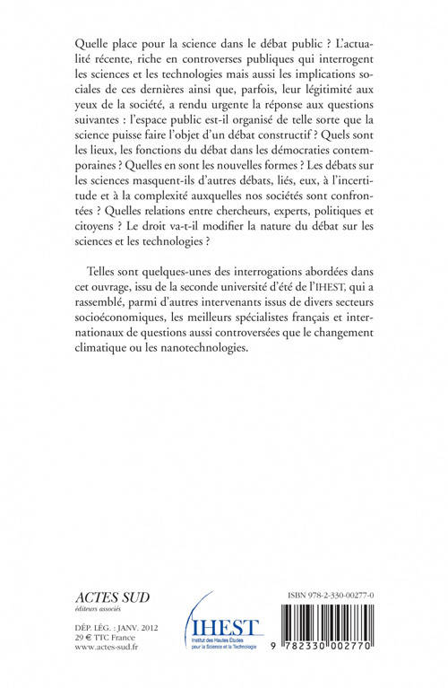 La recherche de la vérité, objet de la science désintéressée, face à l'opinion publique ? Les experts contre les profanes et, coincés au milieu, les "décideurs"? Appliquée aux grandes questions reliant l'éthique, voire la simple survie des populations, et l'avancée technologique, la convergence entre les deux catégories d'individus ne va pas de soi ! Témoins les controverses sur le changement climatique, la vache folle, le principe de précaution contre la grippe aviaire, les nanotechnologies, les OGM, les antennes-relais, etc. Autant de pommes de discorde qui mettent en question tant la légitimité des experts que celle du citoyen et posent le problème crucial de l'information publique, puis de l'action politique.