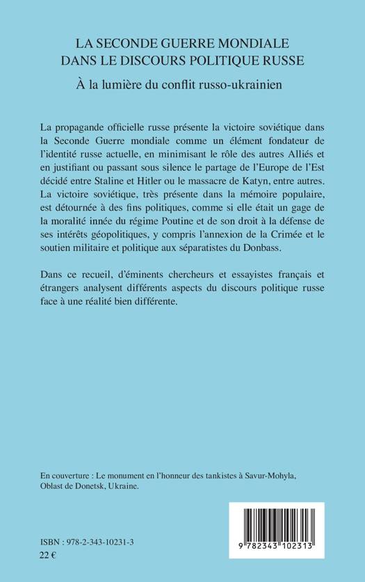 La propagande officielle russe présente la victoire soviétique dans la Seconde Guerre mondiale comme un élément fondateur de l'identité russe actuelle. La victoire soviétique, très présente dans la mémoire populaire, est détournée à des fins politiques, comme si elle était un gage de la moralité innée du régime Poutine et de son droit à la défense de ses intérêts géopolitiques, y compris l'annexion de la Crimée. Dans ce recueil, d'éminents chercheurs et essayistes français et étrangers analysent différents aspects du discours politique russe face à une réalité bien différente.