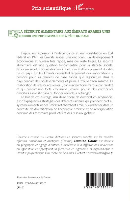 Depuis leur accession à l'indépendance et leur constitution en État fédéral en 1971, les Émirats arabes unis ont connu un développement économique et humain très rapide, mais qui reste fragile. La sécurité alimentaire est une question fondamentale pour la stabilité sociale, économique et politique des Émirats, et pour le développement durable de ce pays. Or les Émirats dépendent largement des importations, y compris pour les denrées de base, tandis que l'agriculture dans le pays connaît des bouleversements et peine à trouver son marché. La réallocation des ressources en eau, dans un territoire marqué par l'aridité et qui connaît une forte croissance urbaine, pousse des entreprises émiraties à investir dans du foncier agricole à l'étranger. Le but de cet ouvrage, issu d'une thèse de doctorat en géographie, est d'expliquer les stratégies des différents acteurs qui prennent part au système alimentaire des Émirats et cherchent à mieux le maîtriser, dans un contexte de diversification de l'économie émiratie et de réorganisation continue des territoires productifs et des réseaux globaux.