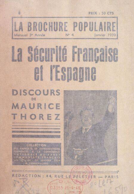 Discours prononcé par Maurice Thorez, secrétaire général du Parti communiste français, député de la Seine, le 21 janvier 1939, à la Conférence nationale, à Gennevilliers