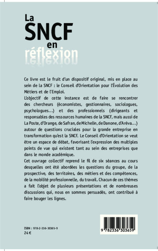 Fruit du Conseil d'Orientation pour l'Évolution des Métiers et de l'Emploi mis en place au sein de la SNCF, ce livre reprend le fil de six séances au cours desquelles ont été abordées les questions du groupe, de la prospective, des territoires, des métiers et des compétences, de la mobilité professionnelle, du travail. Ces thèmes cruciaux pour la grande entreprise qu'est la SNCF ont fait l'objet de présentations et de nombreuses discussions qui ont contribué à faire bouger les lignes.