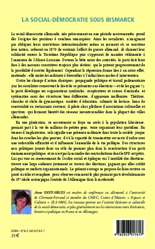 La social-démocratie allemande prend dès l'origine des positions remarquées : les socialistes refusent de soutenir l'effort de guerre allemand en 1870 et clament leur solidarité envers la Troisième République. Mais le parti fait face à des mesures qui l'empêchent d'exister obligeant les militants à diversifier leurs modes d'intervention. Cet ouvrage fait revivre ce passé pour observer comment le parti révolutionnaire le plus puissant du 19e siècle accompagna l'Allemagne dans la modernité.